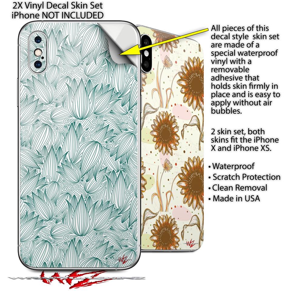 2 Decal style Skin Wraps set for Apple iPhone X and XS Flowers Pattern 09