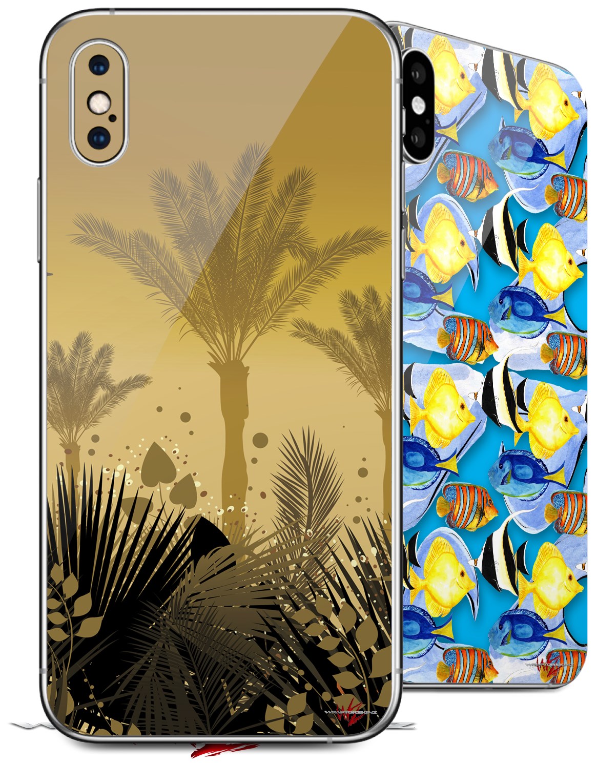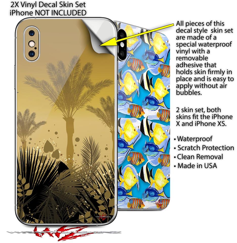 2 Decal style Skin Wraps set for Apple iPhone X and XS Summer Palm Trees