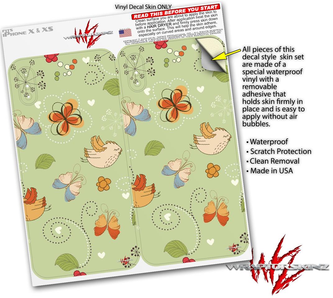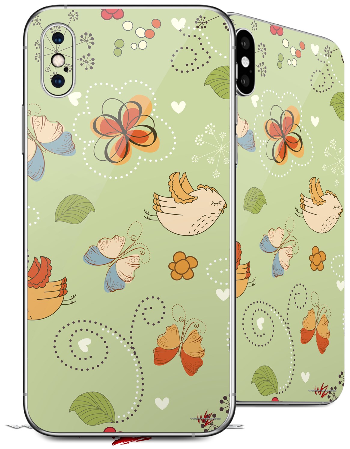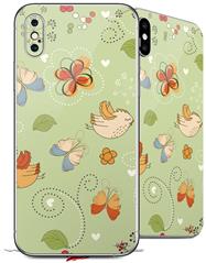 2 Decal style Skin Wraps set for Apple iPhone X and XS Birds Butterflies and Flowers