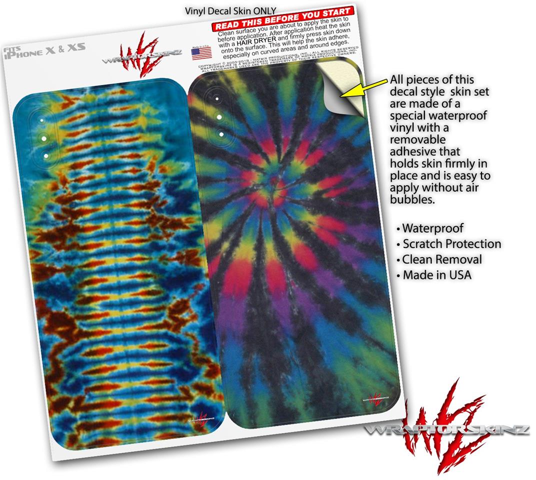 2 Decal style Skin Wraps set for Apple iPhone X and XS Tie Dye Spine 106