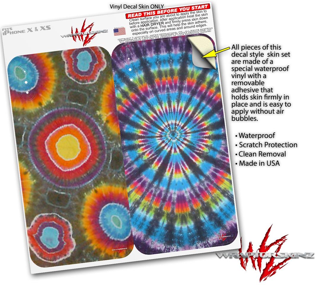 2 Decal style Skin Wraps set for Apple iPhone X and XS Tie Dye Circles 100