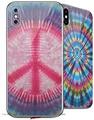 2 Decal style Skin Wraps set for Apple iPhone X and XS Tie Dye Peace Sign 108