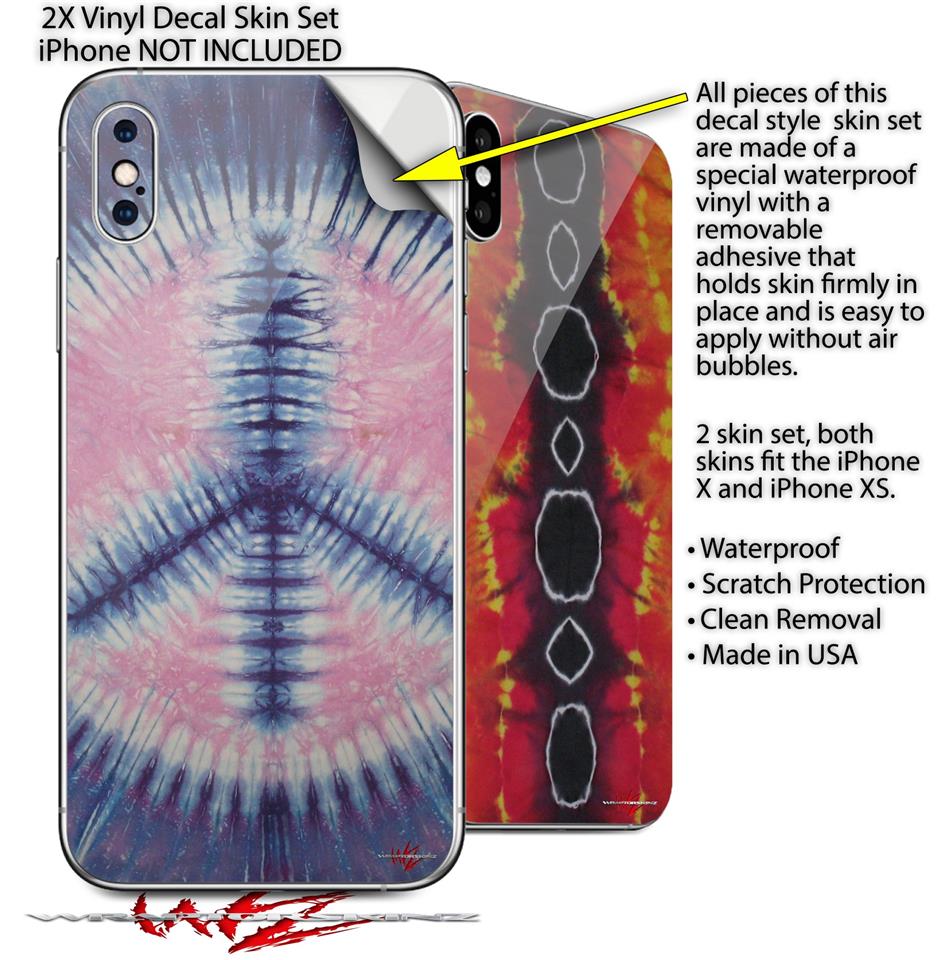 2 Decal style Skin Wraps set for Apple iPhone X and XS Tie Dye Peace Sign 101
