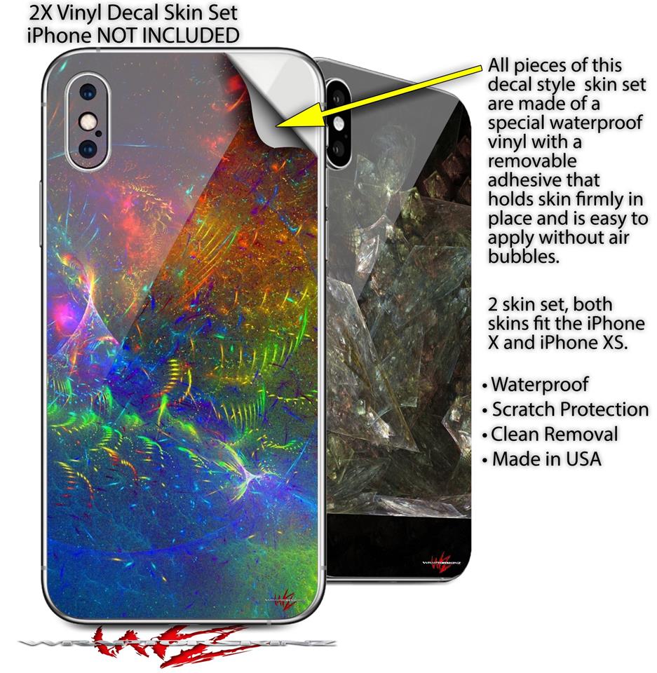 2 Decal style Skin Wraps set for Apple iPhone X and XS Fireworks