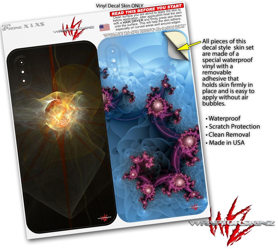 • 2 Decal style vinyl skins covers back side of the Apple iPhone X and iPhone XS - Not a hard case - Compatible with most Clear and TPU cases.
