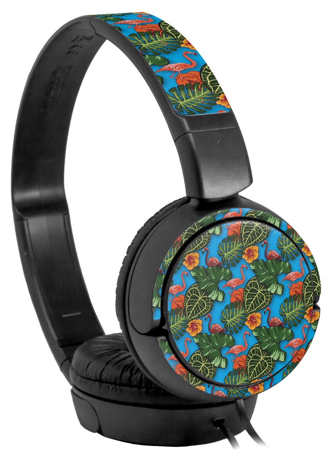 Decal style Skin Wrap for Sony MDR ZX110 Headphones Famingos and Flowers Blue Medium (HEADPHONES NOT INCLUDED)