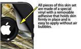 WraptorSkinz® are self adhering vinyl decal style skins and are a great way to add a new look to your protective case. WraptorSkinz® are a composite of two layers of commercial grade materials. The bottom layer is a soft, flexible vinyl with a special removable adhesive that is easily positioned, applied without air bubbles. Next we print the bottom layer with UV protected, fade resistant inks that deliver superb photo quality designs in vibrant colors. Finally we bond a professional grade laminate over the entire skin adding a glossy protective finish.