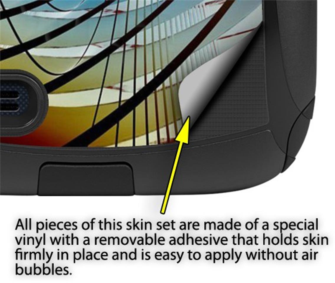 WraptorSkinz® are self adhering vinyl decal style skins and are a great way to add a new look to your protective case. WraptorSkinz® are a composite of two layers of commercial grade materials. The bottom layer is a soft, flexible vinyl with a special removable adhesive that is easily positioned, applied without air bubbles. Next we print the bottom layer with UV protected, fade resistant inks that deliver superb photo quality designs in vibrant colors. Finally we bond a professional grade laminate over the entire skin adding a glossy protective finish.