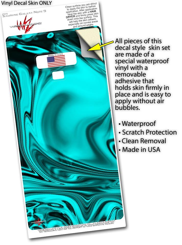 Decal style Skin Wrap compatible with Samsung Galaxy Note 9 Liquid Metal Chrome Neon Teal