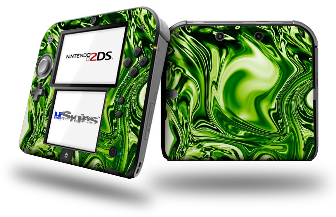 Liquid Metal Chrome Neon Green - Decal Style Vinyl Skin compatible with Nintendo 2DS - 2DS NOT INCLUDED