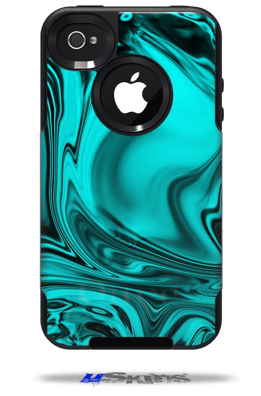 Liquid Metal Chrome Neon Teal - Decal Style Vinyl Skin compatible with Otterbox Commuter iPhone4/4s Case (CASE SOLD SEPARATELY)
