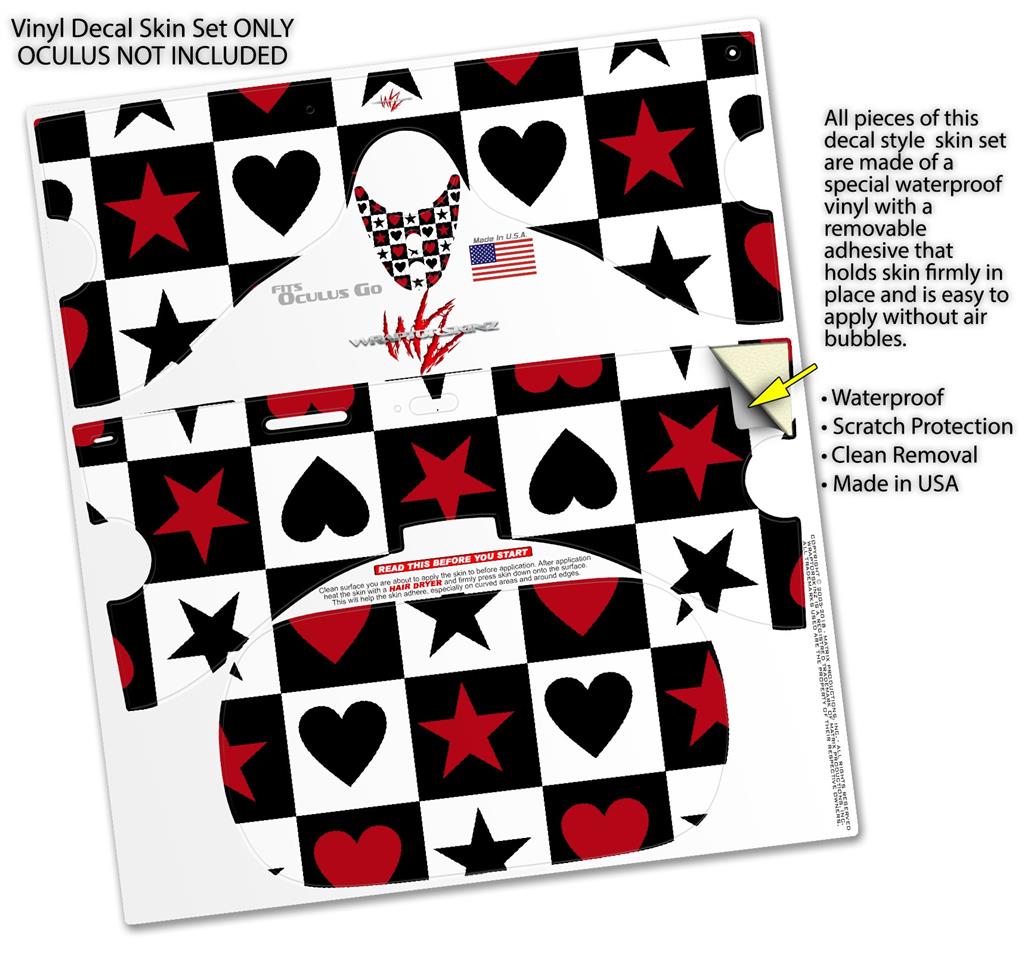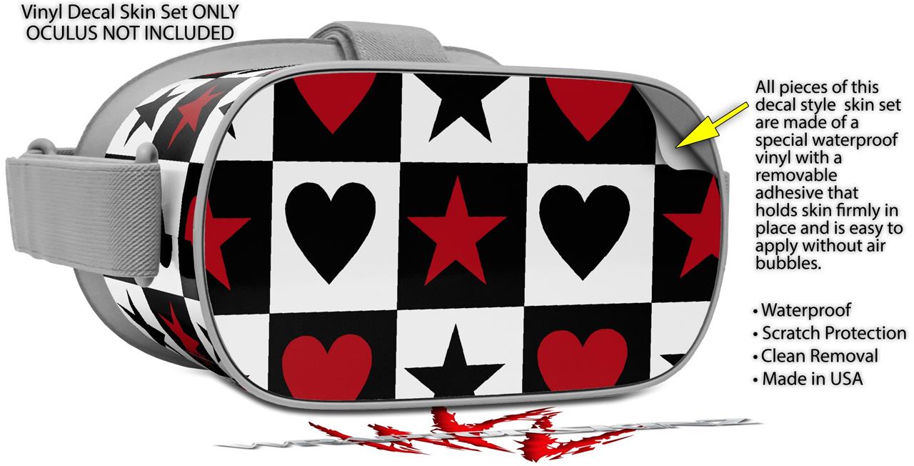Decal style Skin Wrap compatible with Oculus Go Headset - Hearts and Stars Red (OCULUS NOT INCLUDED)