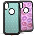 2x Decal style Skin Wrap Set compatible with Otterbox Defender iPhone X and Xs Case - Hearts Red On White (CASE NOT INCLUDED)