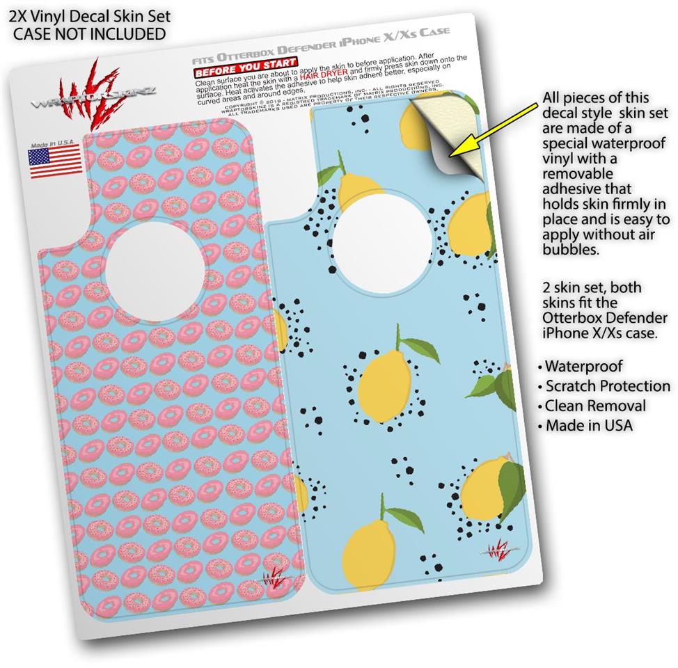 2x Decal style Skin Wrap Set compatible with Otterbox Defender iPhone X and Xs Case - Donuts Blue (CASE NOT INCLUDED)