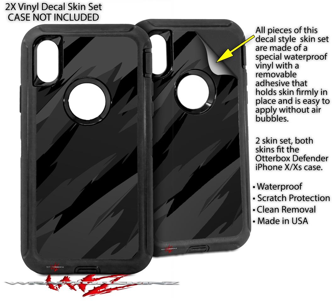 2x Decal style Skin Wrap Set compatible with Otterbox Defender iPhone X and Xs Case - Jagged Camo Black (CASE NOT INCLUDED)