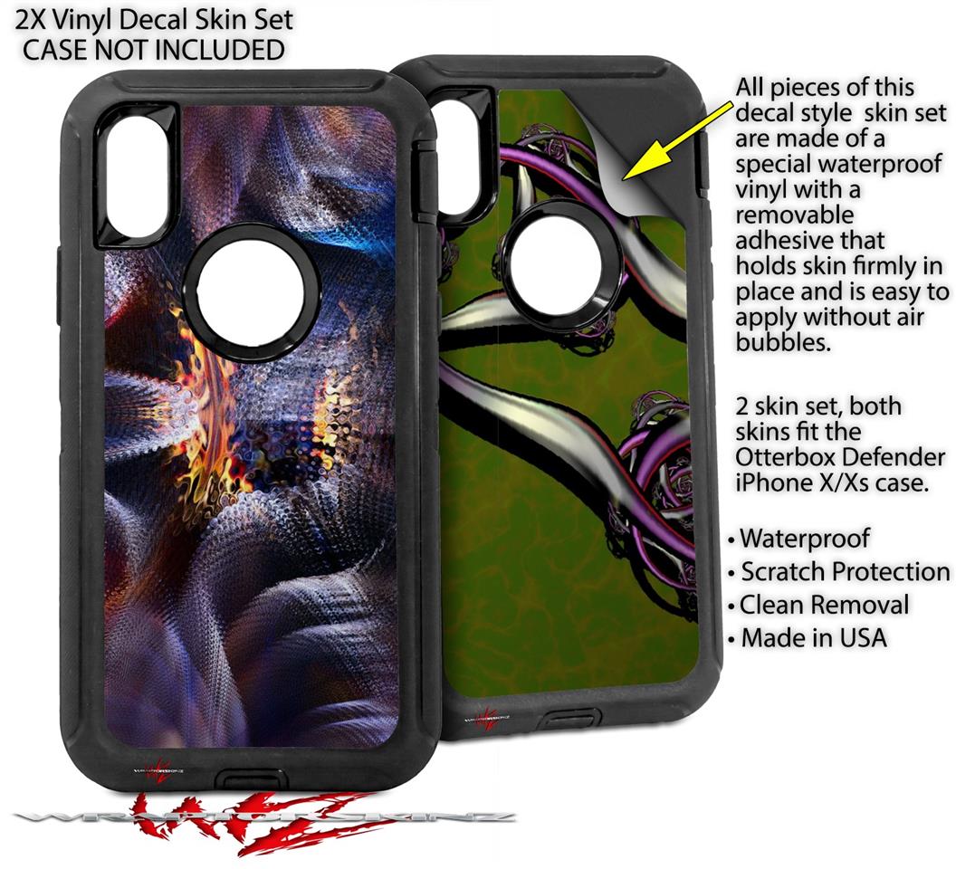 2x Decal style Skin Wrap Set compatible with Otterbox Defender iPhone X and Xs Case - Hyper Warp (CASE NOT INCLUDED)