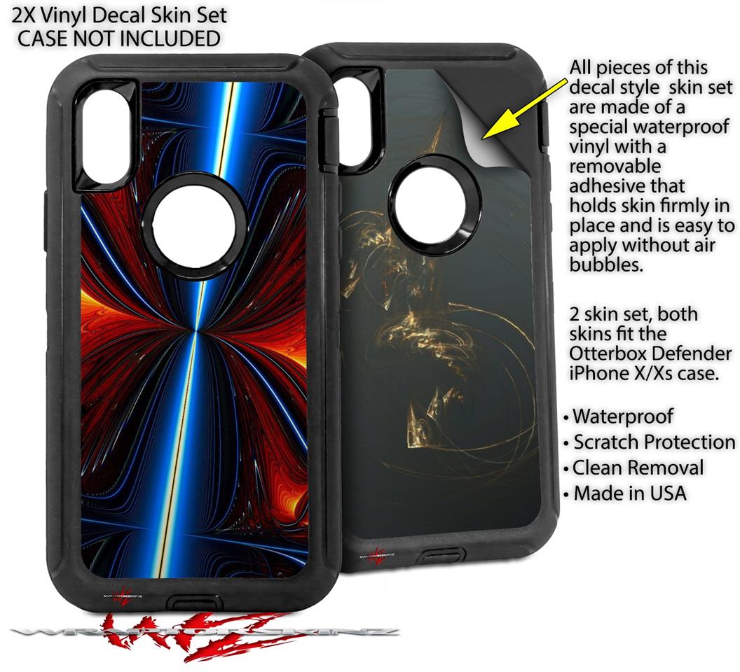 2x Decal style Skin Wrap Set compatible with Otterbox Defender iPhone X and Xs Case - Quasar Fire (CASE NOT INCLUDED)