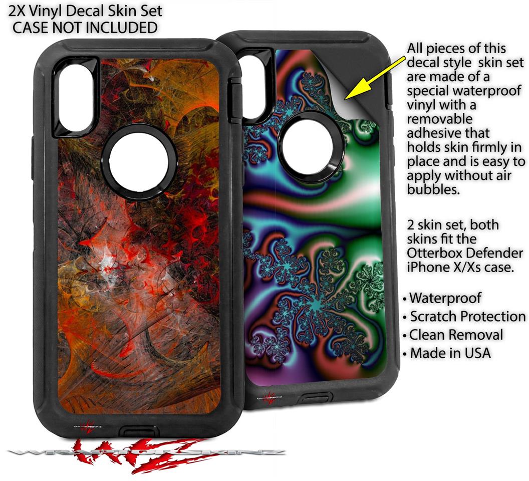 2x Decal style Skin Wrap Set compatible with Otterbox Defender iPhone X and Xs Case - Impression 12 (CASE NOT INCLUDED)