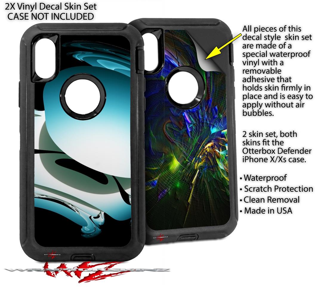 2x Decal style Skin Wrap Set compatible with Otterbox Defender iPhone X and Xs Case - Silently-2 (CASE NOT INCLUDED)