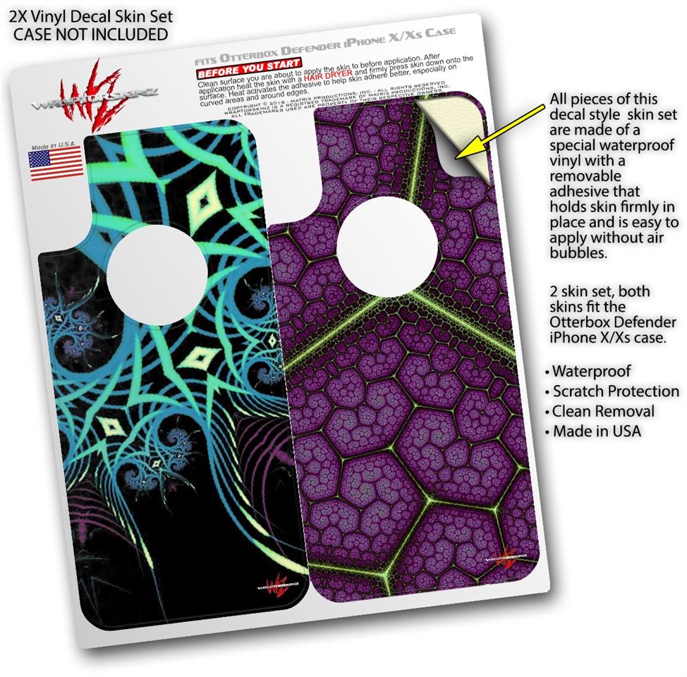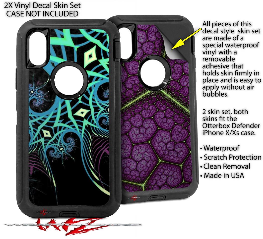 • CASE NOT INCLUDED - 2 Skins cover back surface of 2 Otterbox Defender iPhone X / Xs cases as pictured.