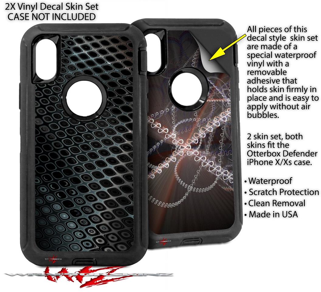 2x Decal style Skin Wrap Set compatible with Otterbox Defender iPhone X and Xs Case - Dark Mesh (CASE NOT INCLUDED)