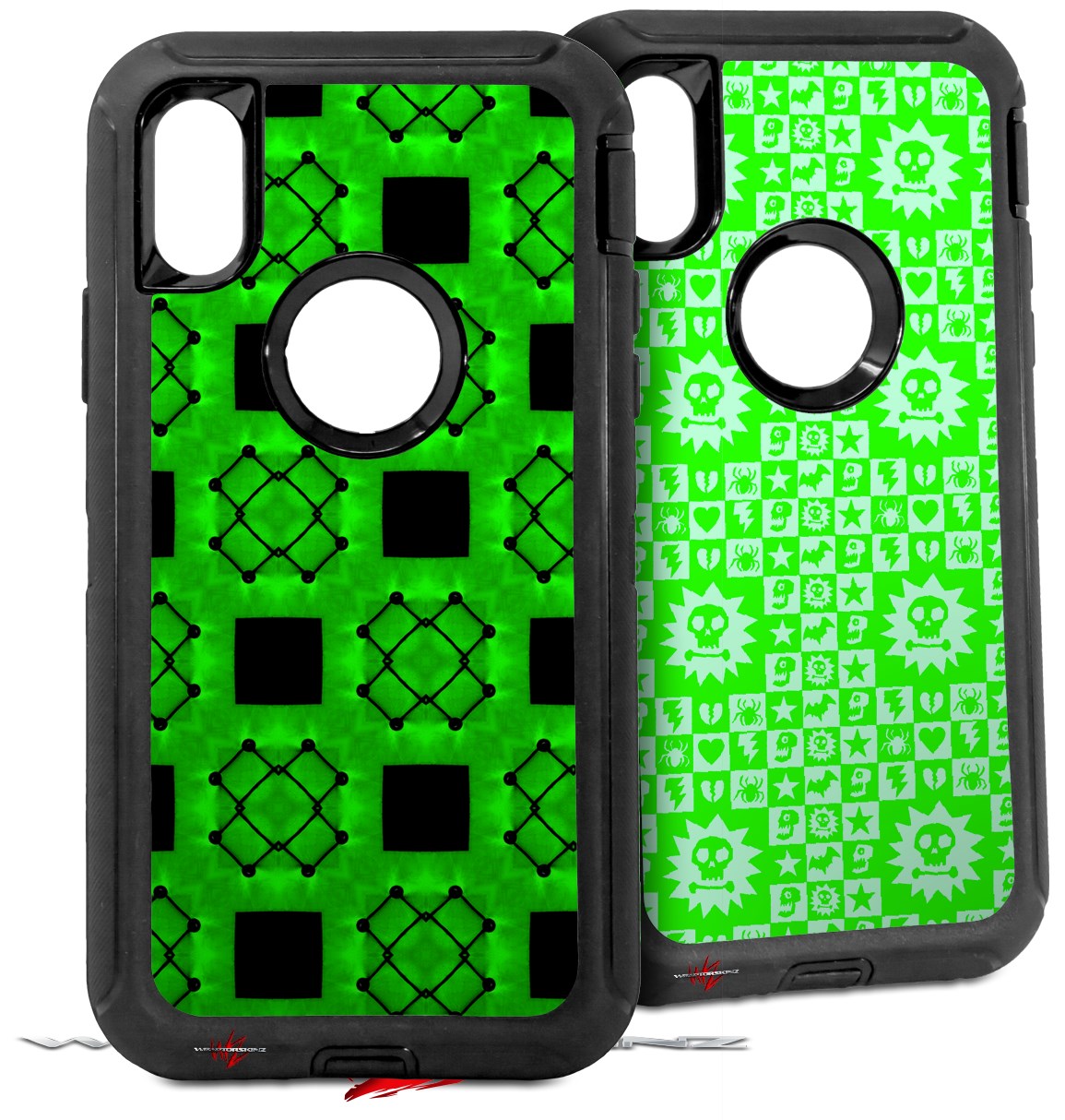 2x Decal style Skin Wrap Set compatible with Otterbox Defender iPhone X and Xs Case - Criss Cross Green (CASE NOT INCLUDED)