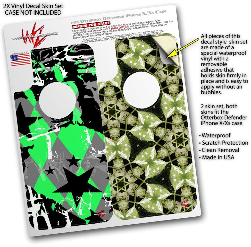 2x Decal style Skin Wrap Set compatible with Otterbox Defender iPhone X and Xs Case - SceneKid Green (CASE NOT INCLUDED)