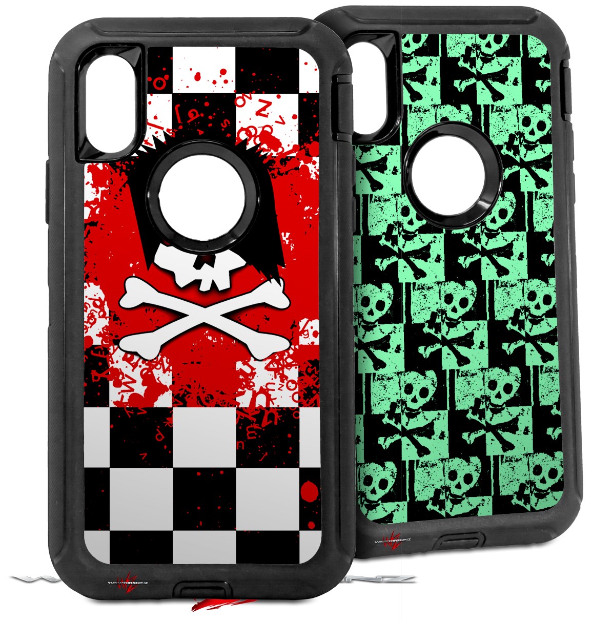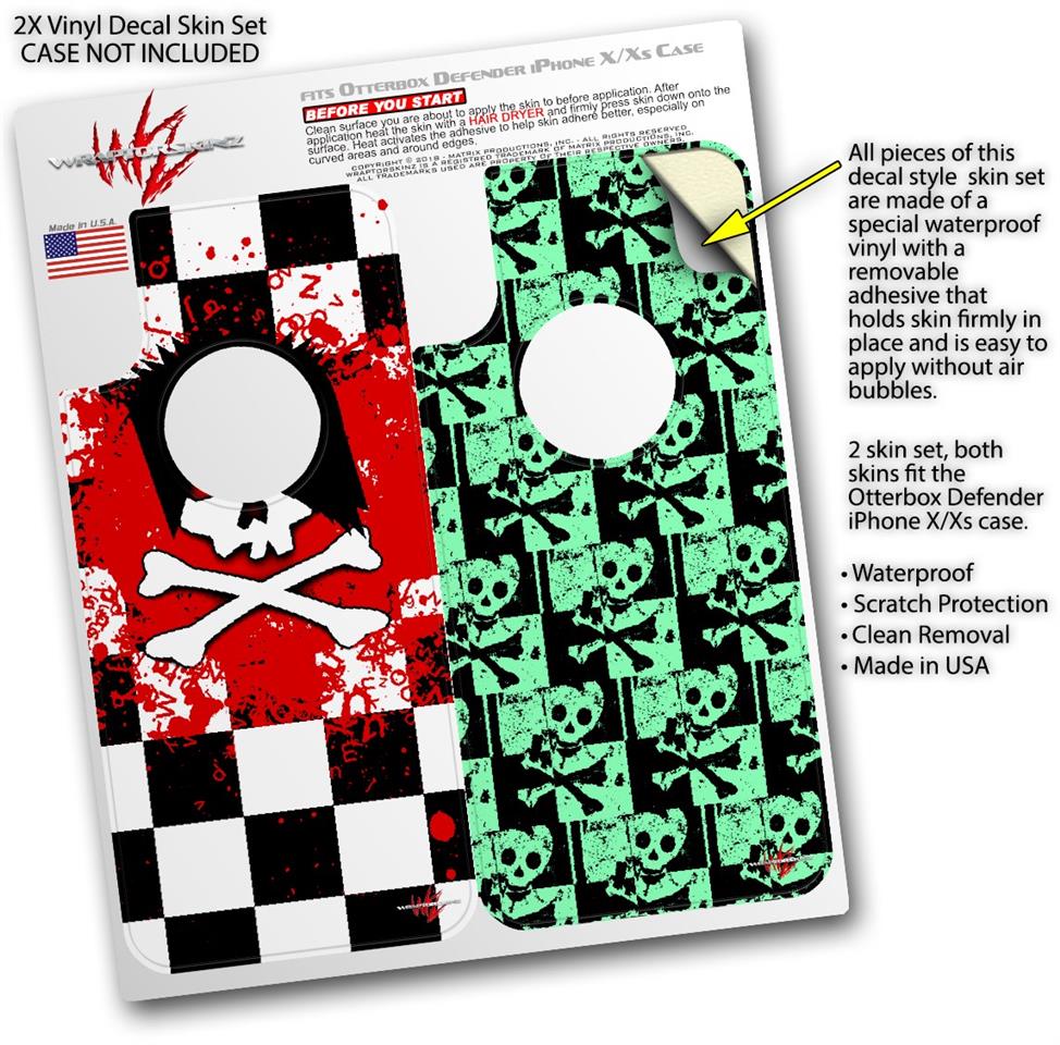 2x Decal style Skin Wrap Set compatible with Otterbox Defender iPhone X and Xs Case - Emo Skull 5 (CASE NOT INCLUDED)