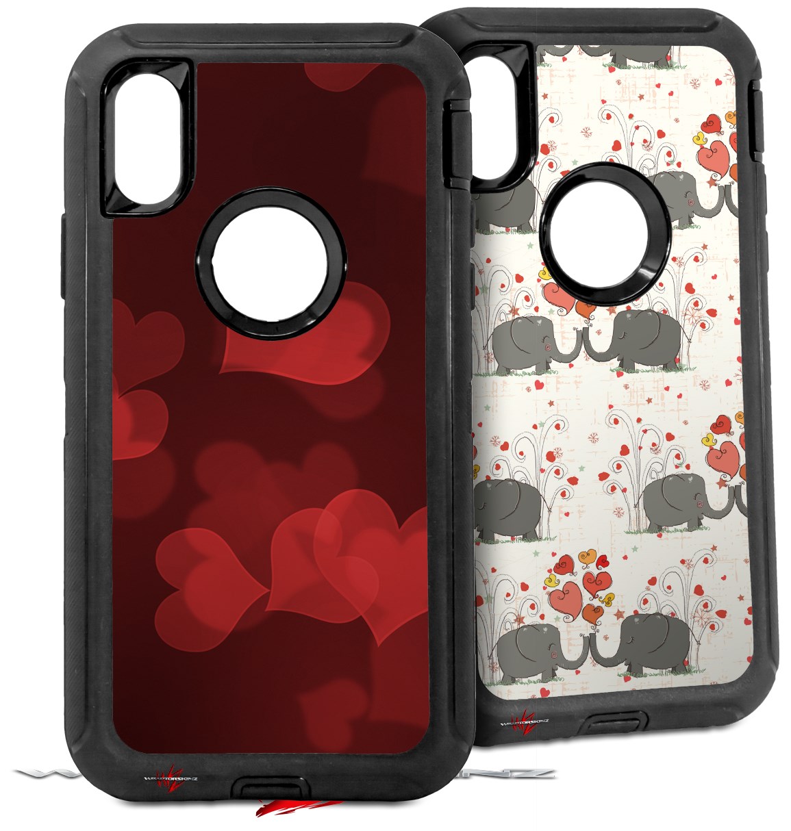 2x Decal style Skin Wrap Set compatible with Otterbox Defender iPhone X and Xs Case - Bokeh Hearts Red (CASE NOT INCLUDED)