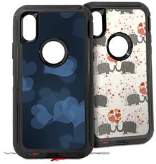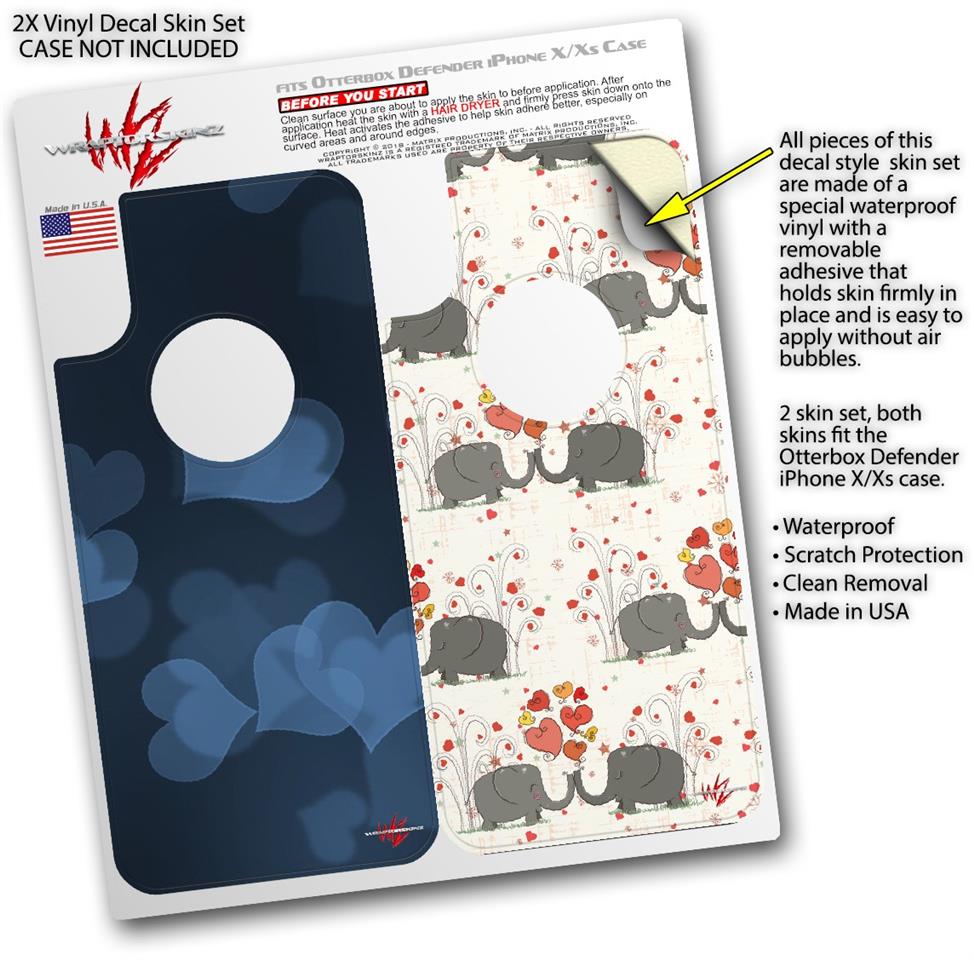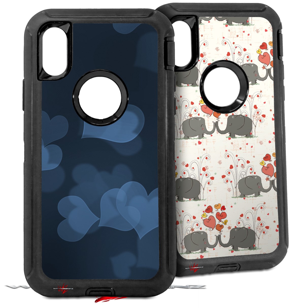2x Decal style Skin Wrap Set compatible with Otterbox Defender iPhone X and Xs Case - Bokeh Hearts Blue (CASE NOT INCLUDED)