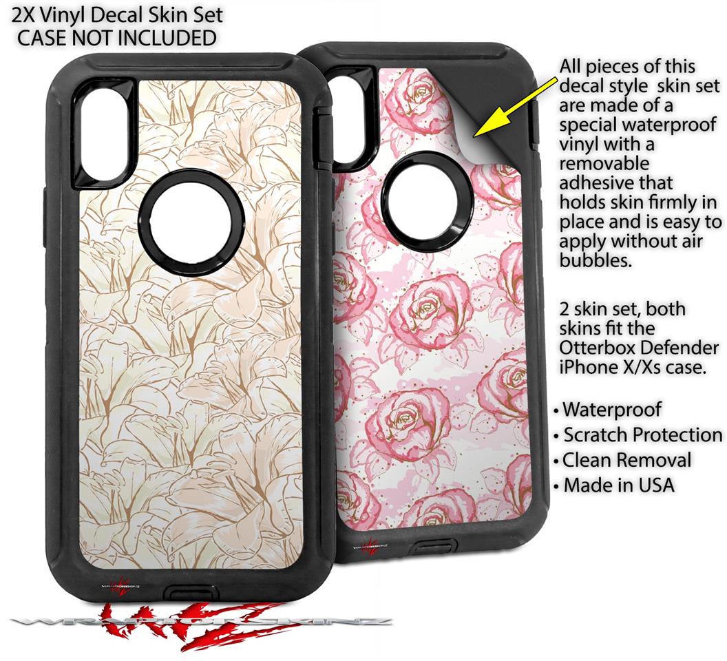 2x Decal style Skin Wrap Set compatible with Otterbox Defender iPhone X and Xs Case - Flowers Pattern 17 (CASE NOT INCLUDED)