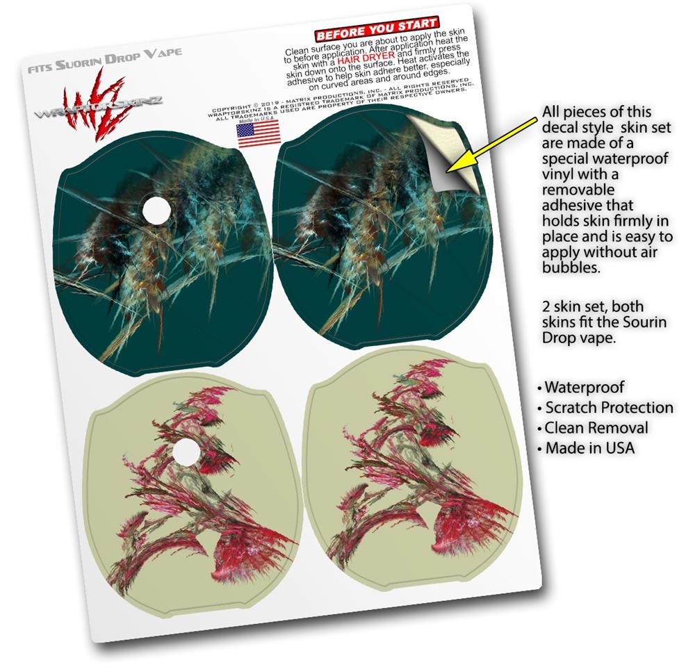 WraptorSkinz® skin wraps compatible with Suorin Drop Vape are printed using superb photo quality designs and vibrant colors printed with special fade resistant inks that last even in direct sun for years. WraptorSkinz are a composite of two layers of commercial grade materials. The bottom layer is a soft, flexible vinyl with a special removable adhesive that is easily positioned, applied without air bubbles. Next, we print the bottom layer with UV protected, fade resistant inks that deliver superb photo quality designs in vibrant colors. Finally, we bond a professional grade laminate over the entire skin adding a glossy protective finish. This product is not affiliated with or endorsed by Suorin.