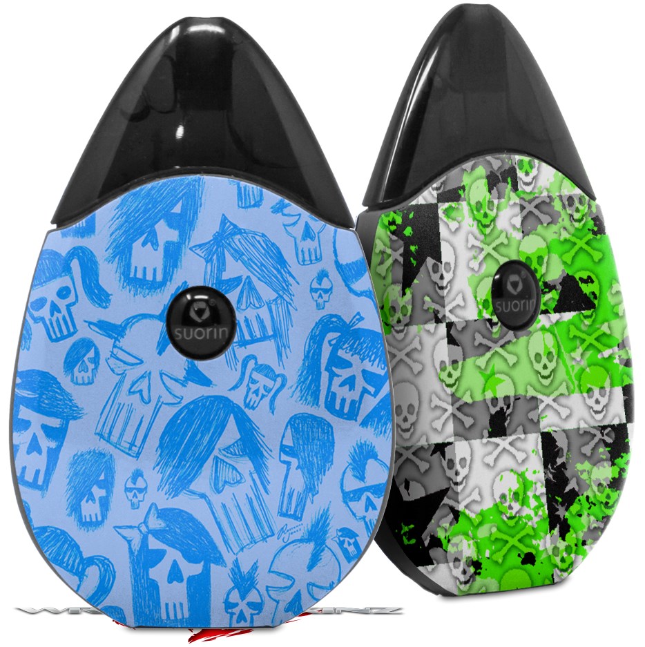 Skin Decal Wrap 2 Pack compatible with Suorin Drop Skull Sketches Blue VAPE NOT INCLUDED