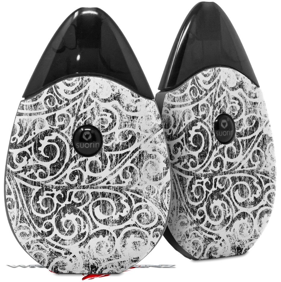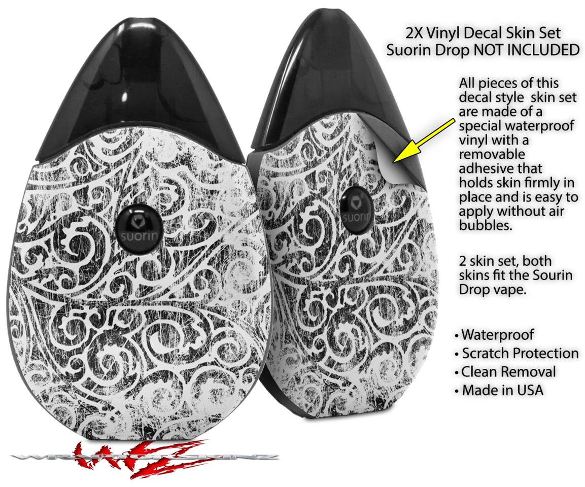Skin Decal Wrap 2 Pack compatible with Suorin Drop Folder Doodles White VAPE NOT INCLUDED