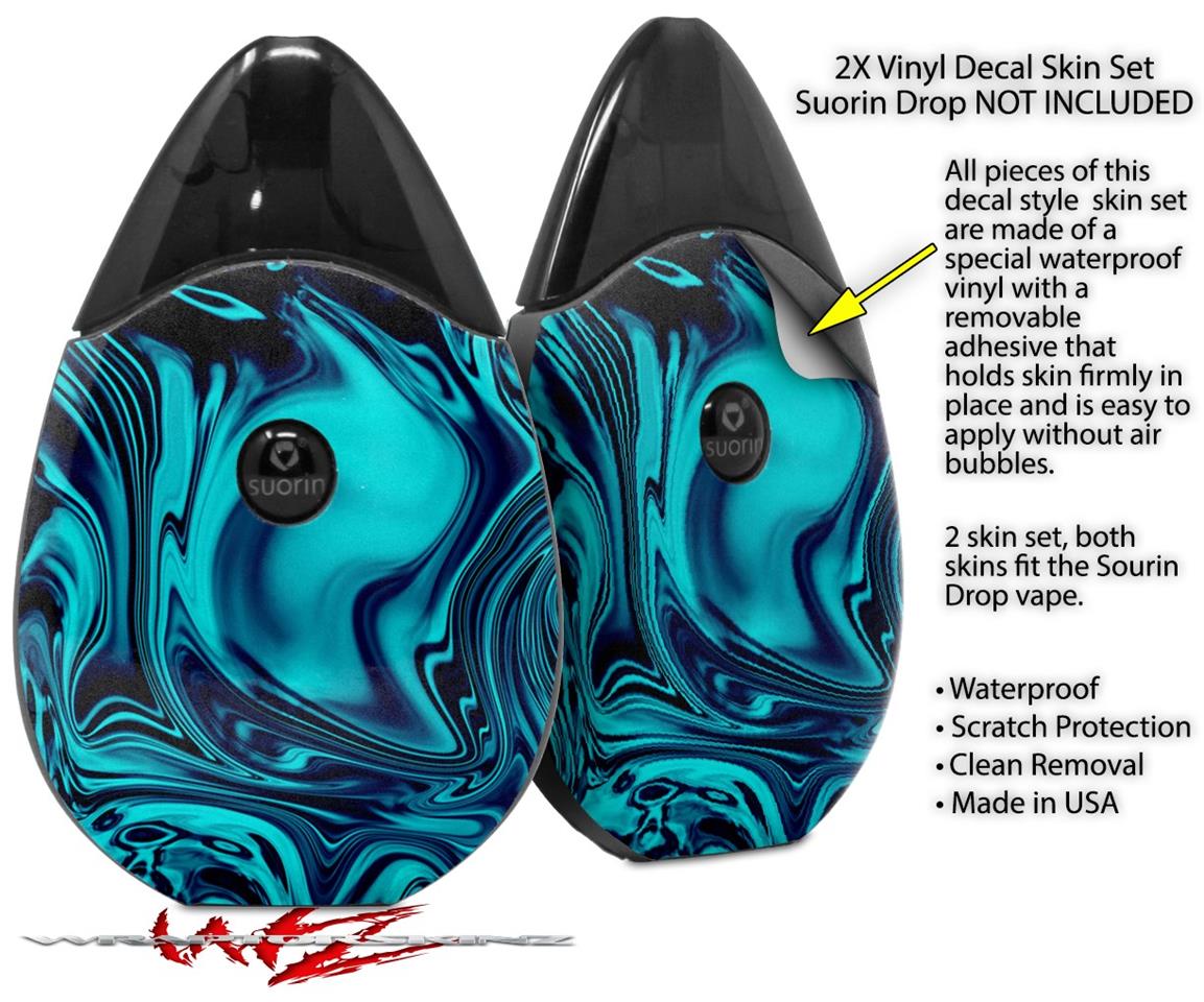 Skin Decal Wrap 2 Pack compatible with Suorin Drop Liquid Metal Chrome Neon Blue VAPE NOT INCLUDED