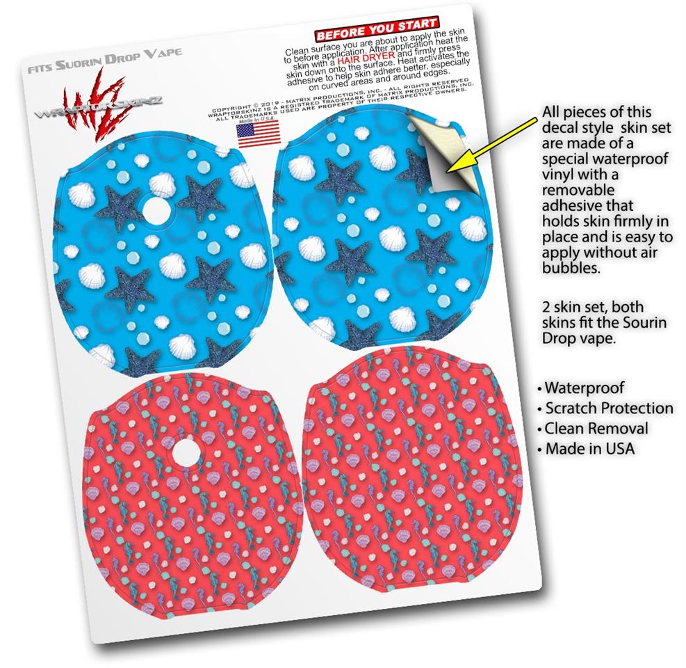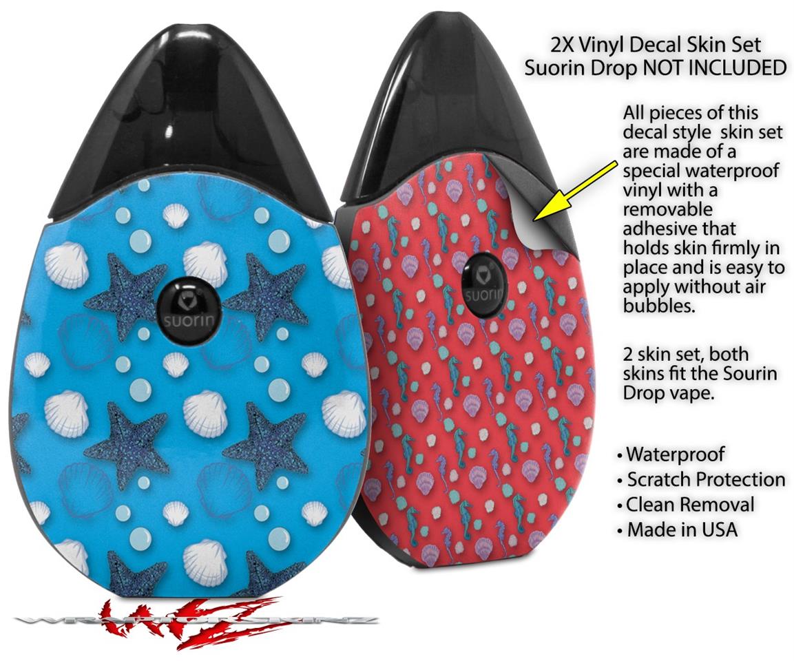 Skin Decal Wrap 2 Pack compatible with Suorin Drop Starfish and Sea Shells Blue Medium VAPE NOT INCLUDED