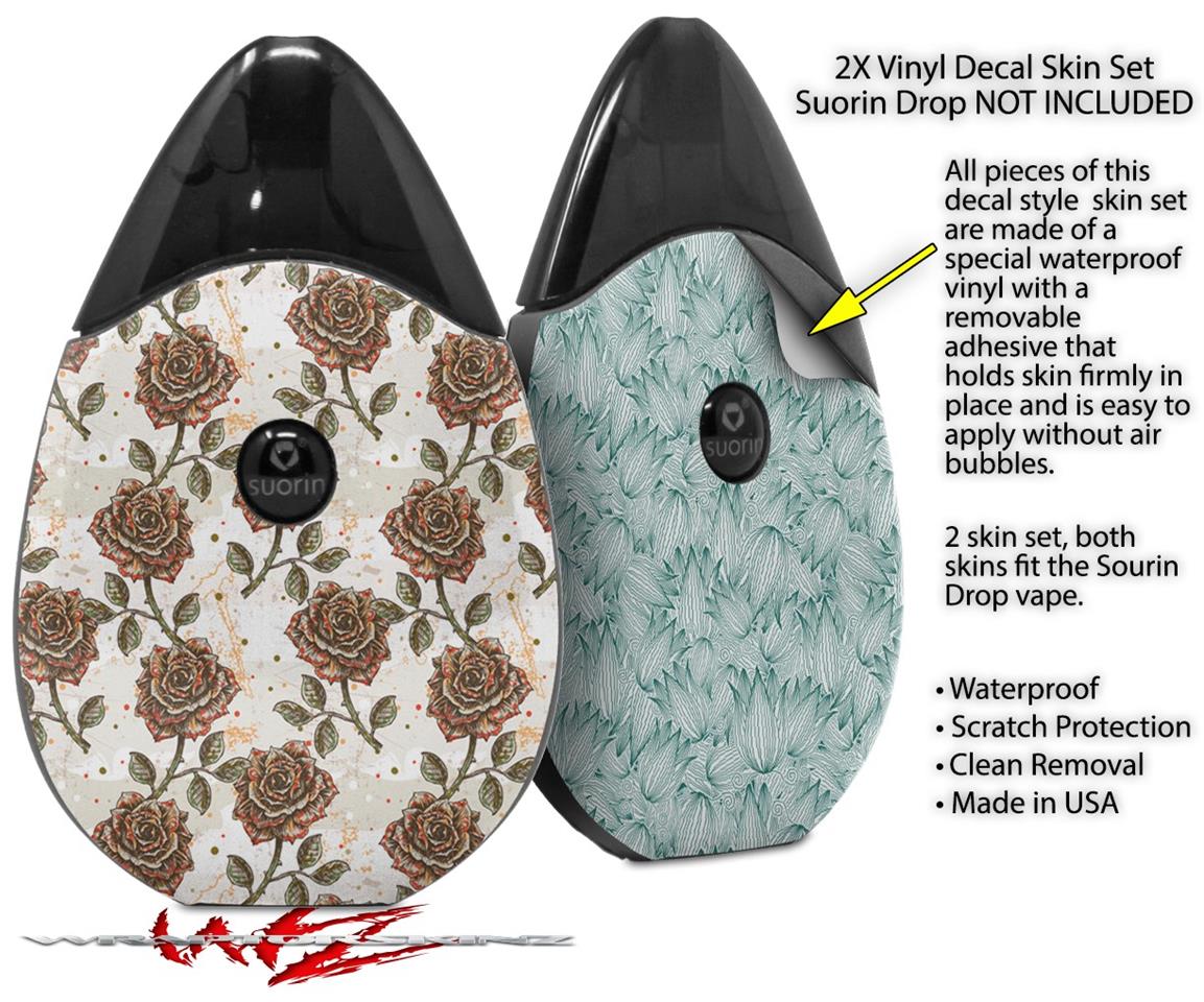 Skin Decal Wrap 2 Pack compatible with Suorin Drop Flowers Pattern Roses 20 VAPE NOT INCLUDED