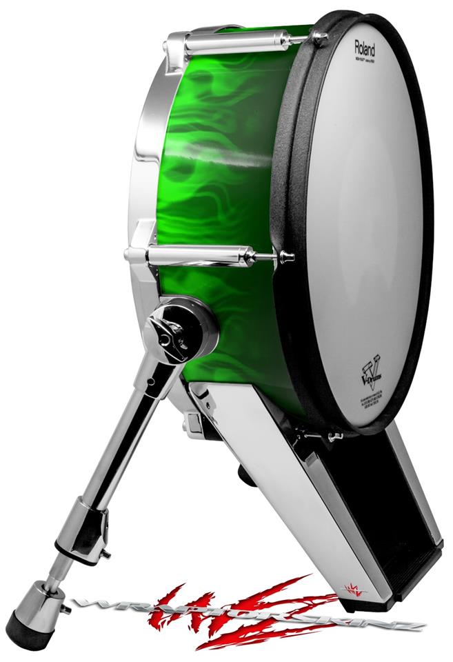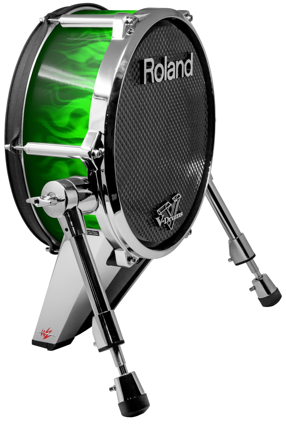 Skin Wrap works with Roland vDrum Shell KD-140 Kick Bass Drum Fire Flames Green (DRUM NOT INCLUDED)