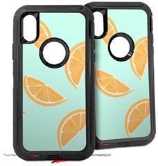 2x Decal style Skin Wrap Set compatible with Otterbox Defender iPhone X and Xs Case - Oranges Blue (CASE NOT INCLUDED)