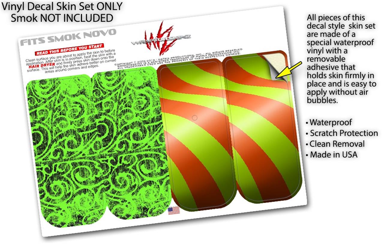 Skin Decal Wrap 2 Pack for Smok Novo v1 Folder Doodles Neon Green VAPE NOT INCLUDED