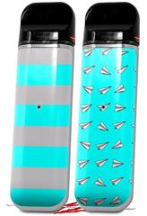 Skin Decal Wrap 2 Pack for Smok Novo v1 Psycho Stripes Neon Teal and Gray VAPE NOT INCLUDED