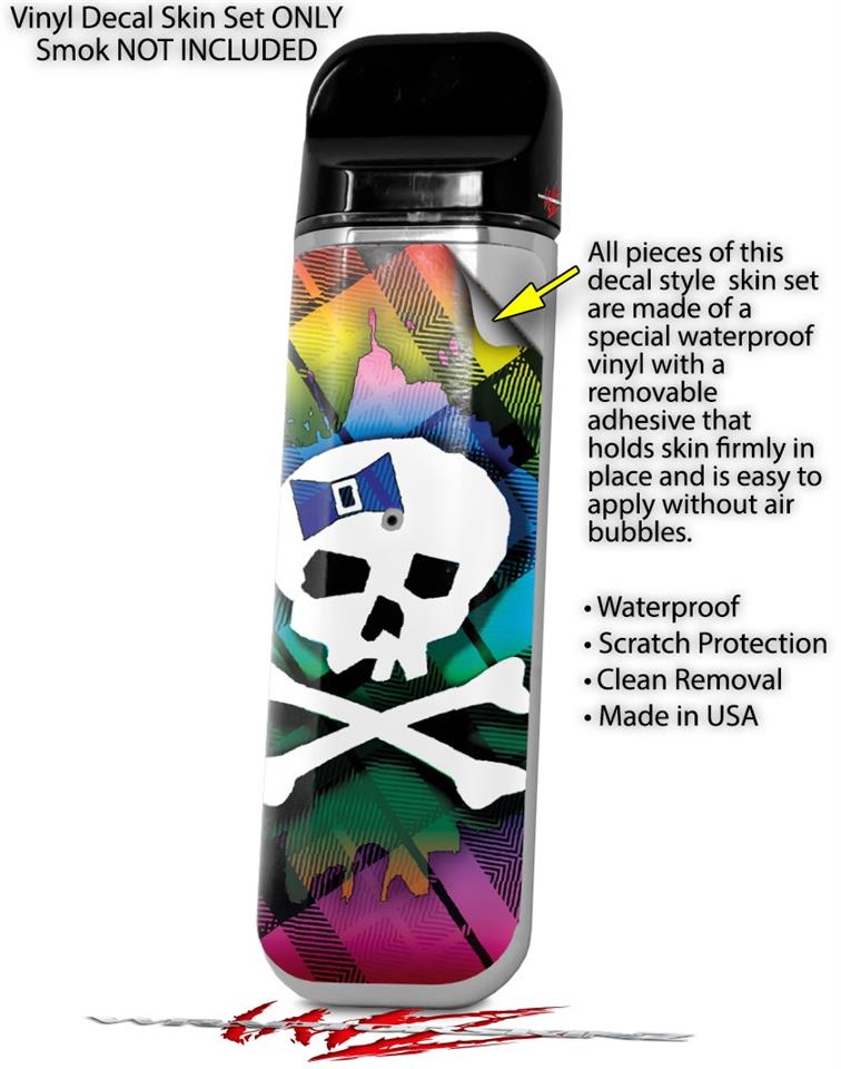 Skin Decal Wrap 2 Pack for Smok Novo v1 Rainbow Plaid Skull VAPE NOT INCLUDED