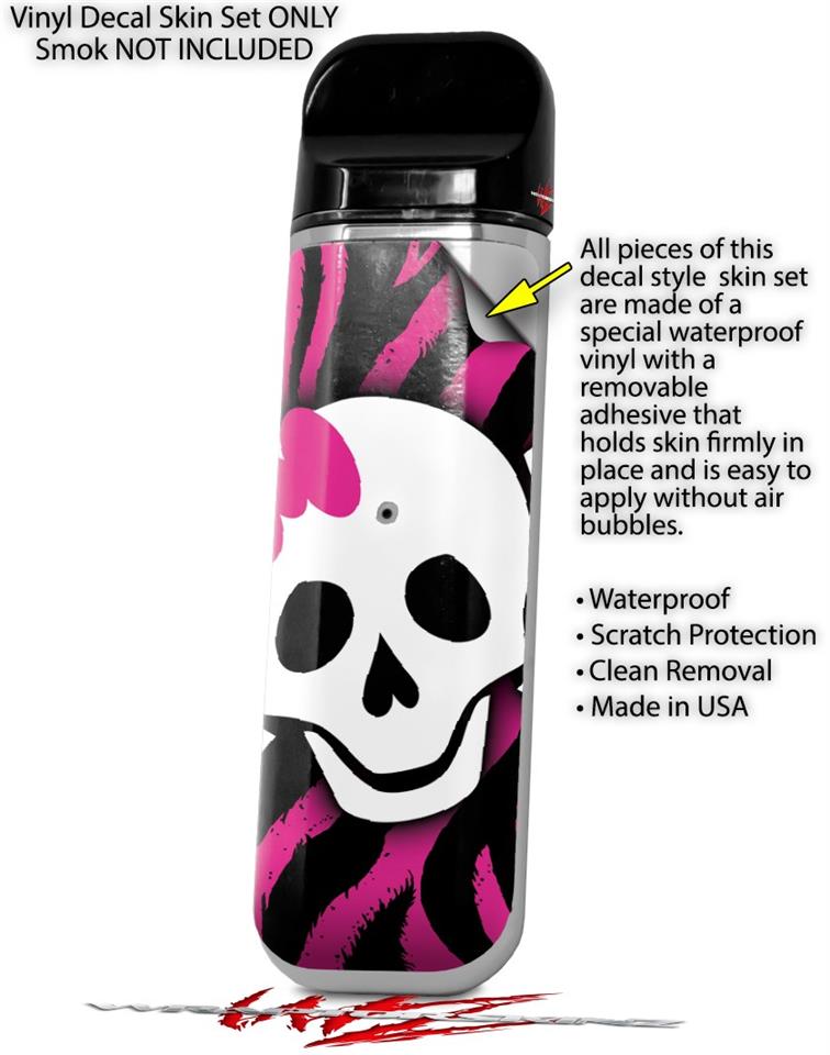 Skin Decal Wrap 2 Pack for Smok Novo v1 Pink Zebra Skull VAPE NOT INCLUDED