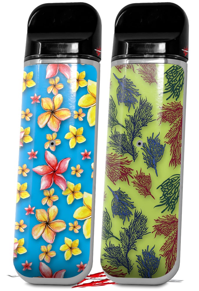 Skin Decal Wrap 2 Pack for Smok Novo v1 Beach Flowers Blue Medium VAPE NOT INCLUDED