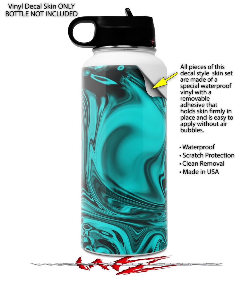 Skin Wrap Decal compatible with Hydro Flask Wide Mouth Bottle 32oz Liquid Metal Chrome Neon Teal (BOTTLE NOT INCLUDED)