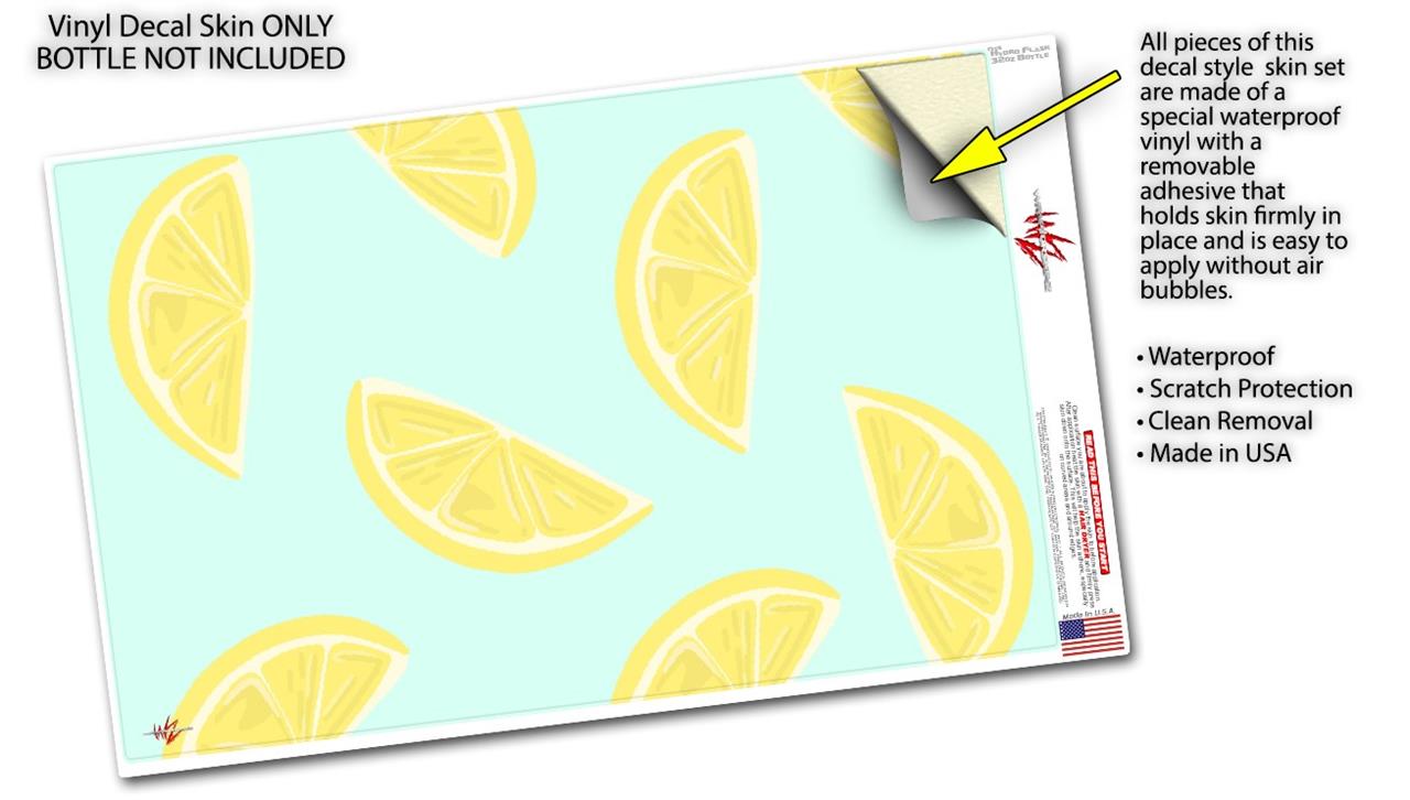 Skin Wrap Decal compatible with Hydro Flask Wide Mouth Bottle 32oz Lemons Blue (BOTTLE NOT INCLUDED)