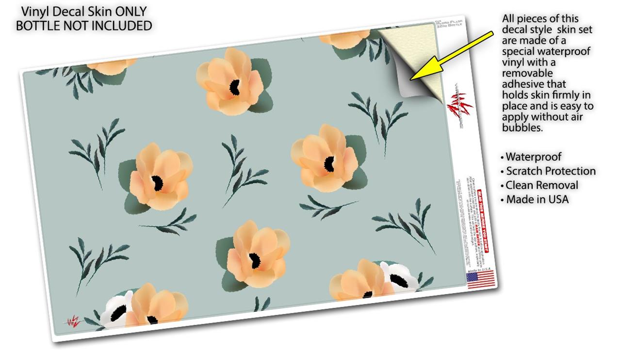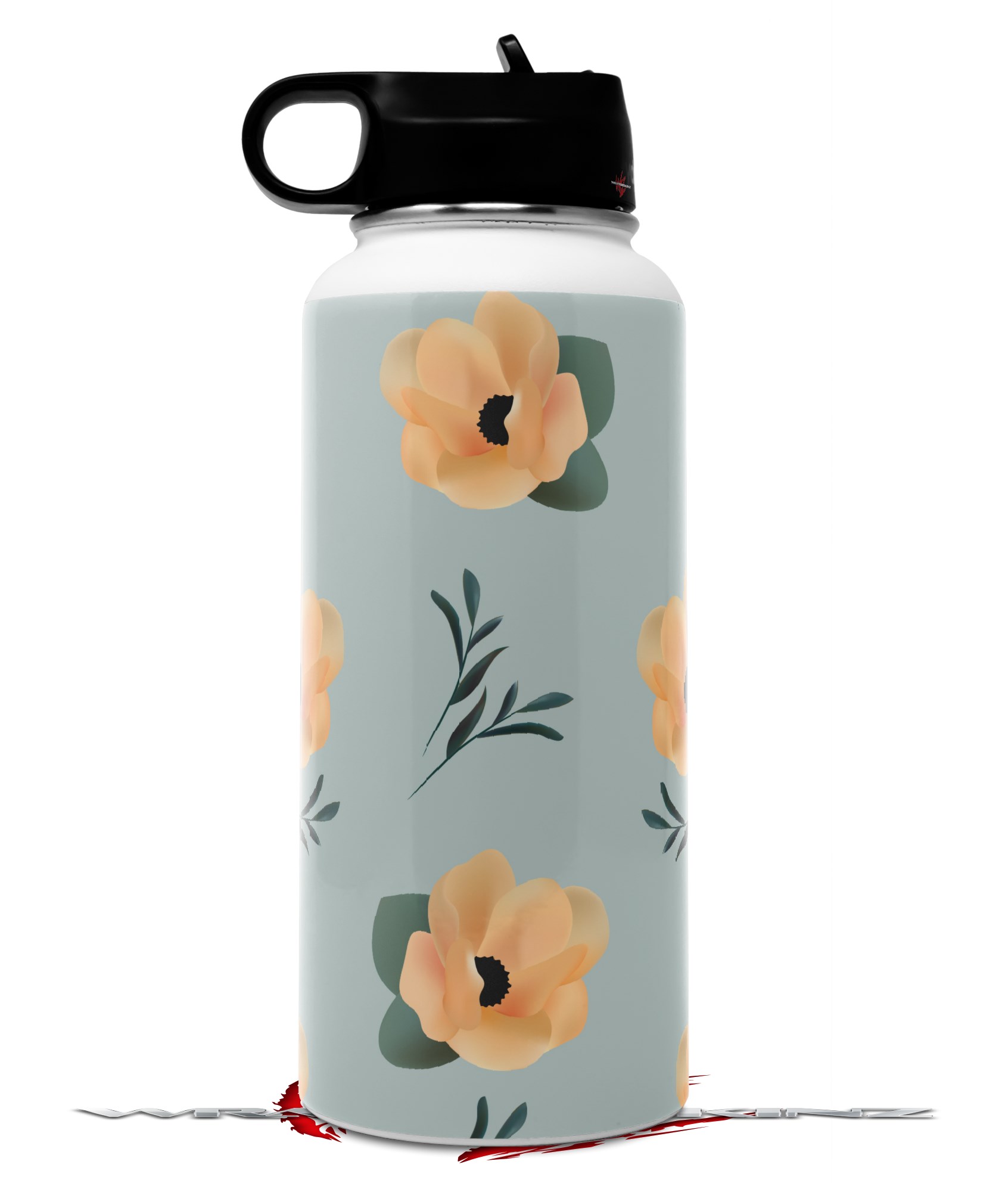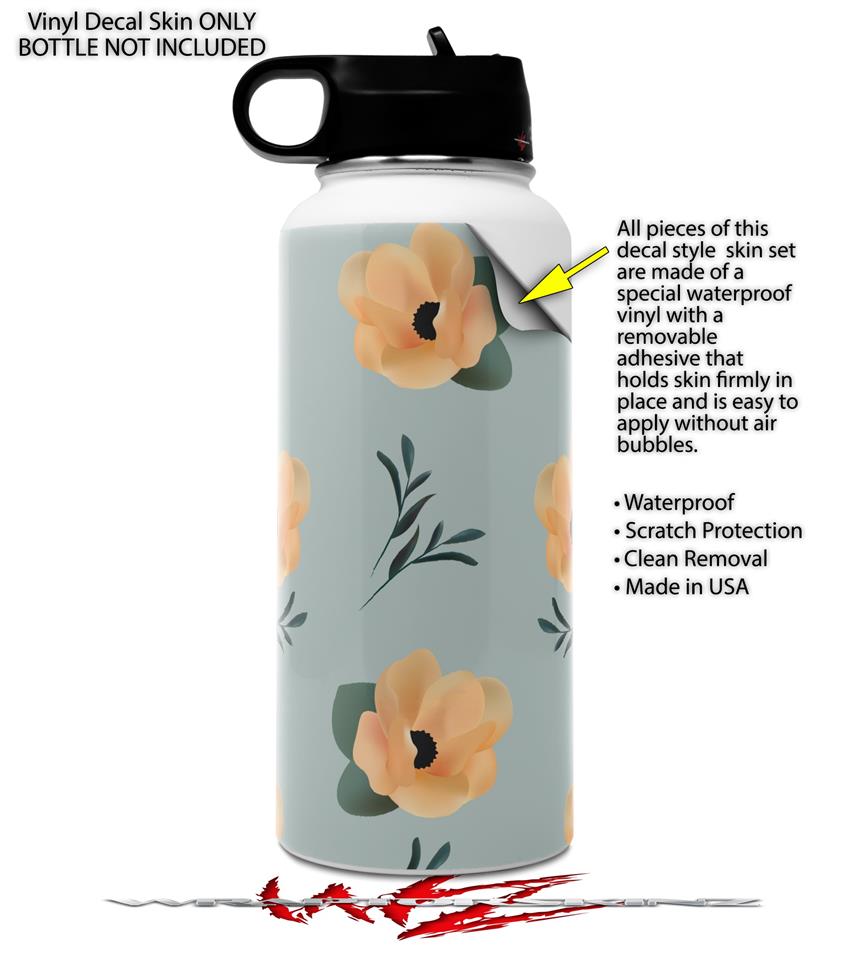 Skin Wrap Decal compatible with Hydro Flask Wide Mouth Bottle 32oz Poppy Orange Light Blue (BOTTLE NOT INCLUDED)