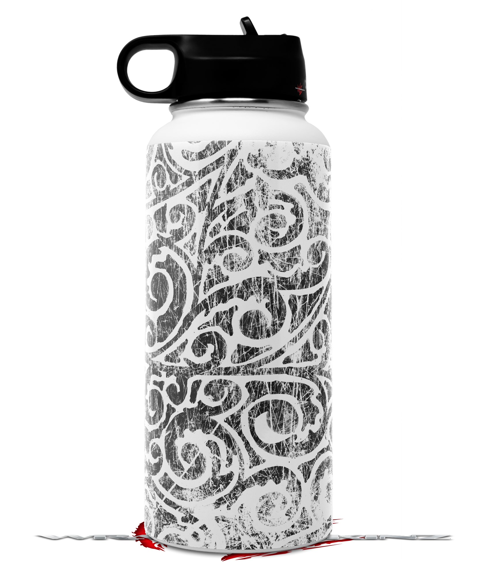 Skin Wrap Decal compatible with Hydro Flask Wide Mouth Bottle 32oz Folder Doodles White (BOTTLE NOT INCLUDED)