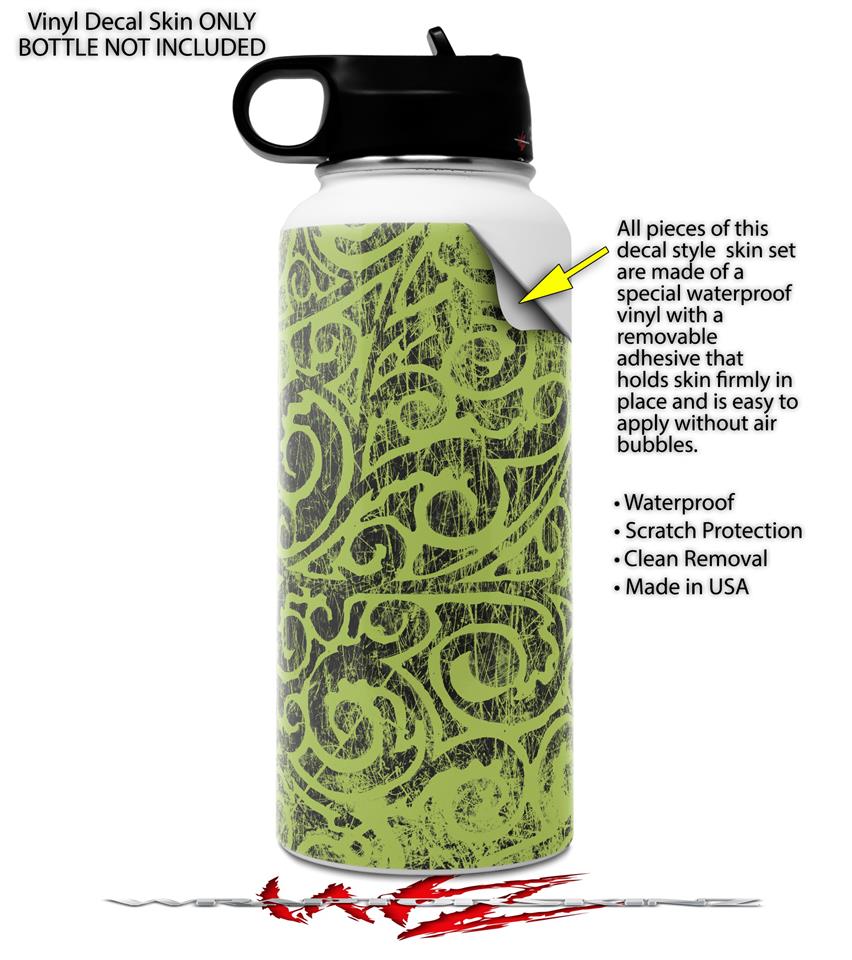 Skin Wrap Decal compatible with Hydro Flask Wide Mouth Bottle 32oz Folder Doodles Sage Green (BOTTLE NOT INCLUDED)