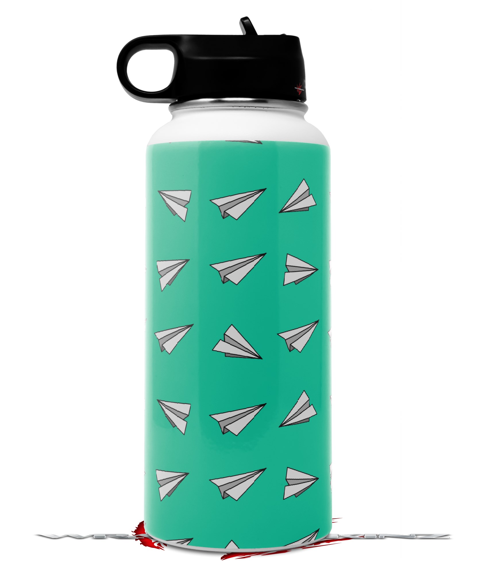 Skin Wrap Decal compatible with Hydro Flask Wide Mouth Bottle 32oz Paper Planes Turquoise (BOTTLE NOT INCLUDED)
